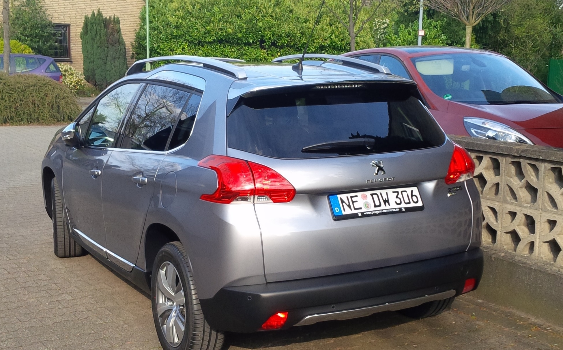 PEUGEOT Allure e-HDI 92 EGS6 STOP & START mit Sitzheizung, Panorama-Glasdach, Gepäckraumtrennnetz, Park Assist, Heck- und Seitenscheiben stärker getönt, Navigationssystem + CD-Laufwerk, Artense Grau (metallic) und Kunstleder/Stoff Schwarz (Oxford).