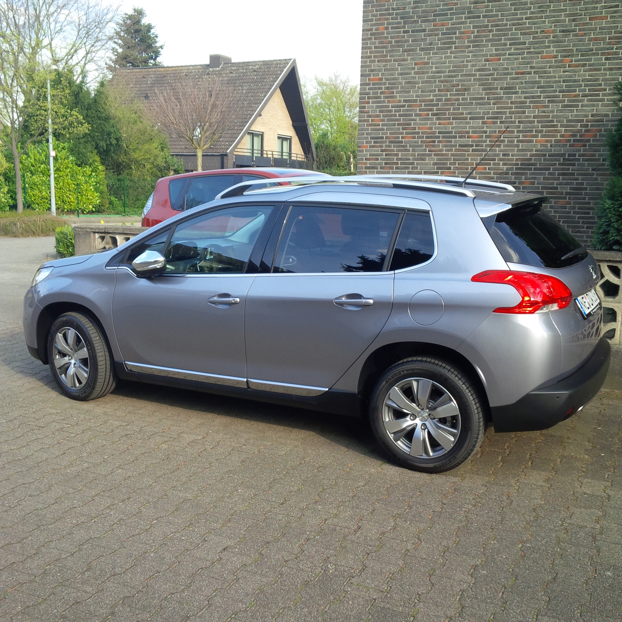PEUGEOT Allure e-HDI 92 EGS6 STOP & START mit Sitzheizung, Panorama-Glasdach, Gepäckraumtrennnetz, Park Assist, Heck- und Seitenscheiben stärker getönt, Navigationssystem + CD-Laufwerk, Artense Grau (metallic) und Kunstleder/Stoff Schwarz (Oxford).